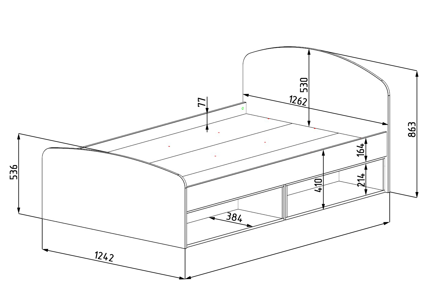 Края кровати закруглены и обработаны ударопрочной кромкой ПВХ