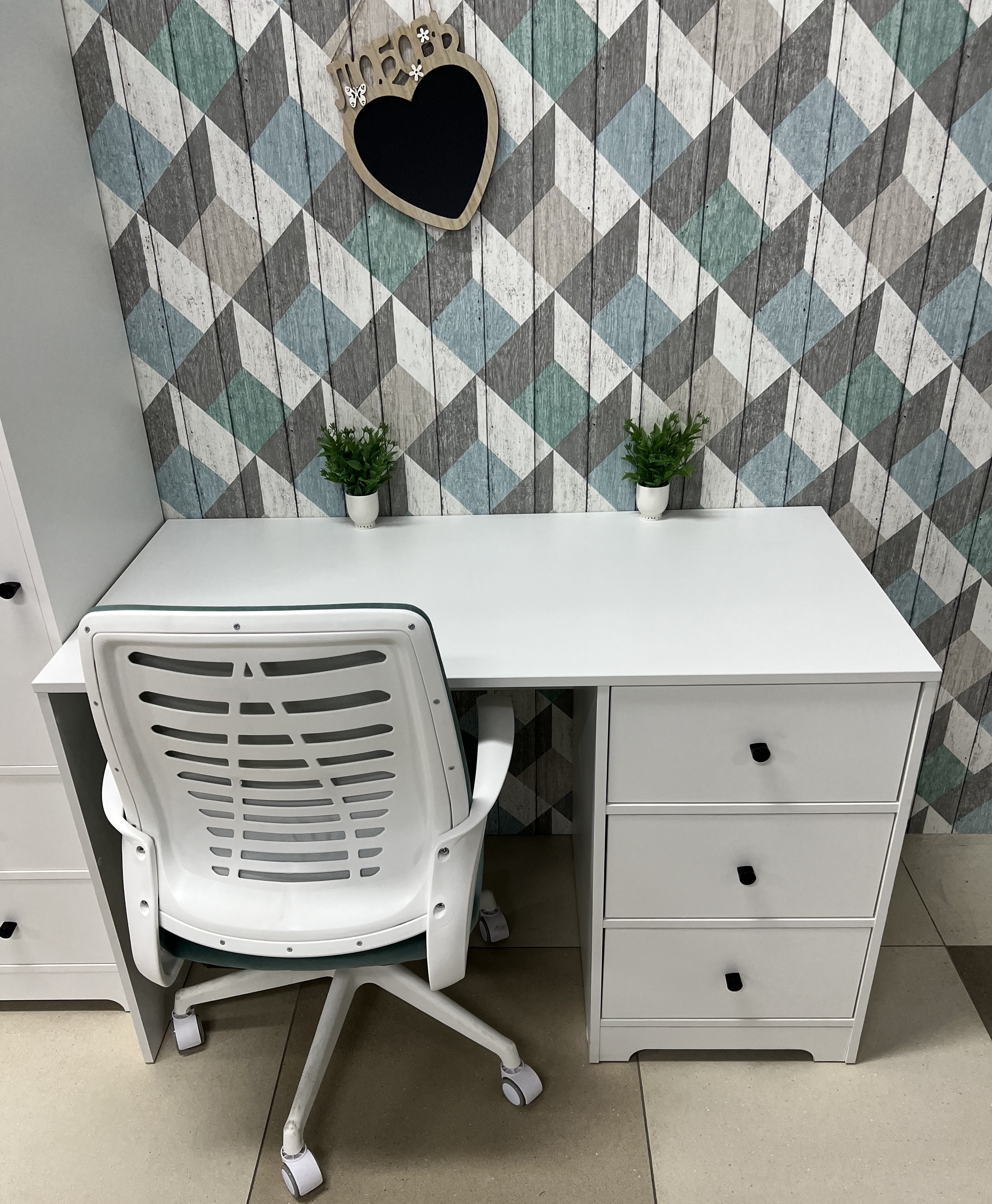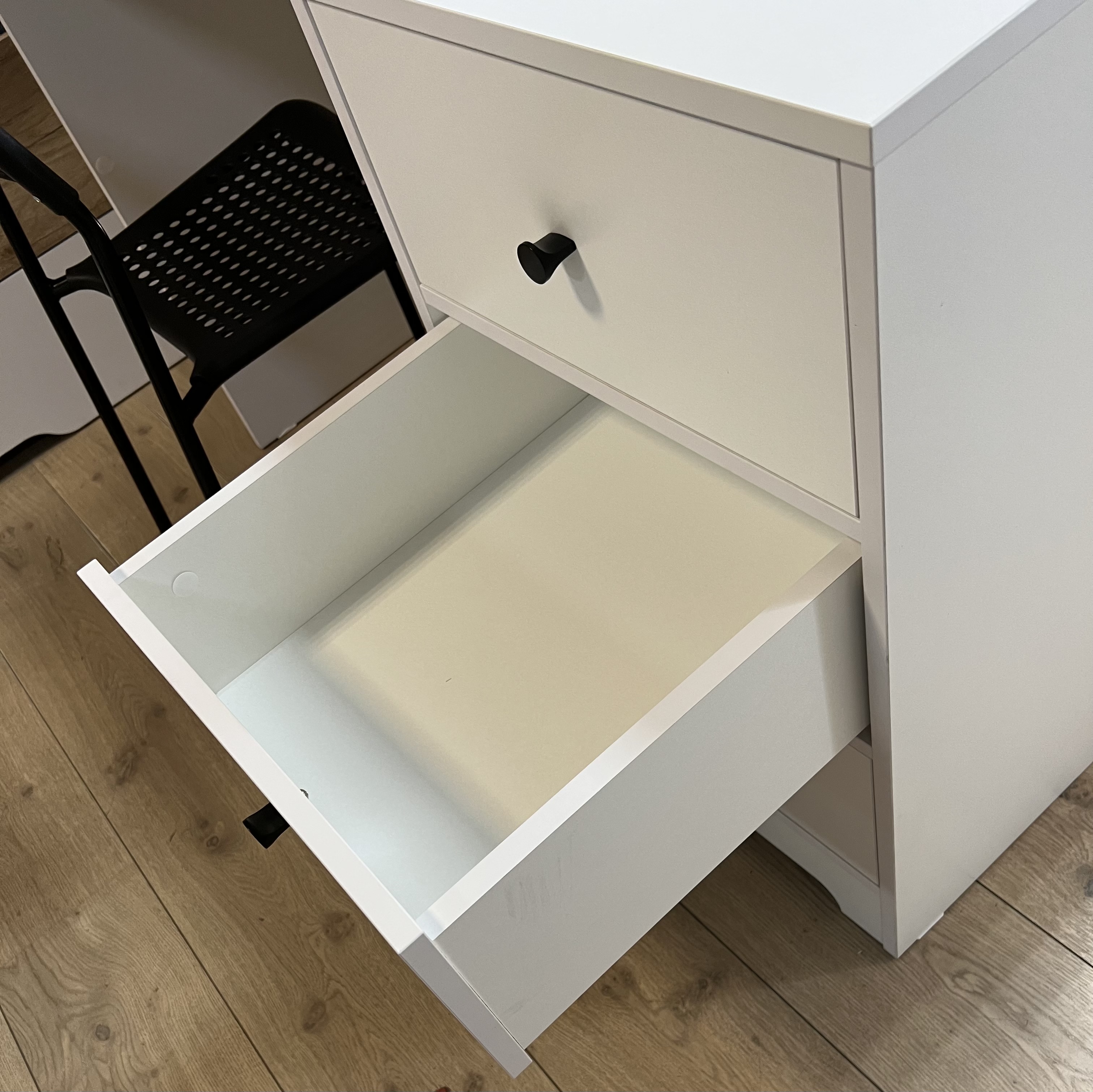 * В стол встроены три выдвижных ящика на направляющих скрытого монтажа с ДОВОДЧИКАМИ.