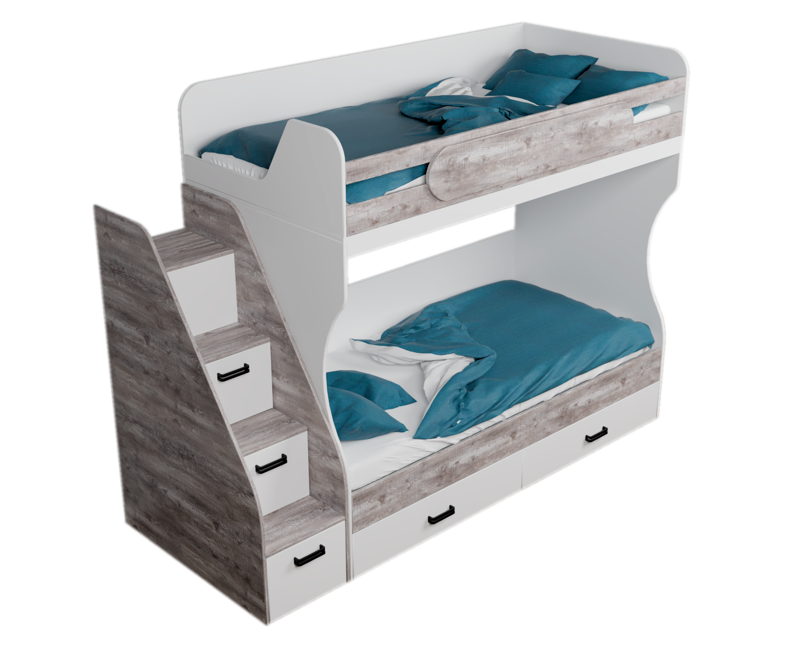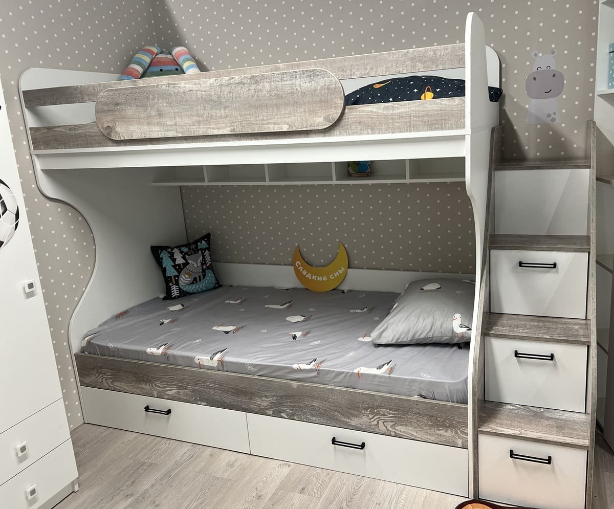 Двухъярусная кровать коллекции мебели Гранд с удобной, безопасной лестницей и комфортной высотой.