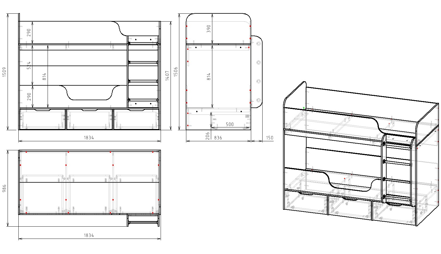 ширина 1834 х высота 1509 х глубина 986 мм