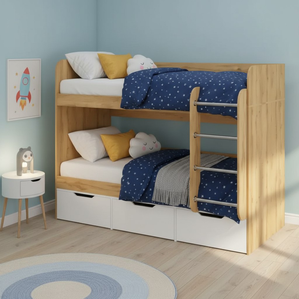 Прочная конструкция кровати выдерживает нагрузку до 90 кг на каждое спальное место.