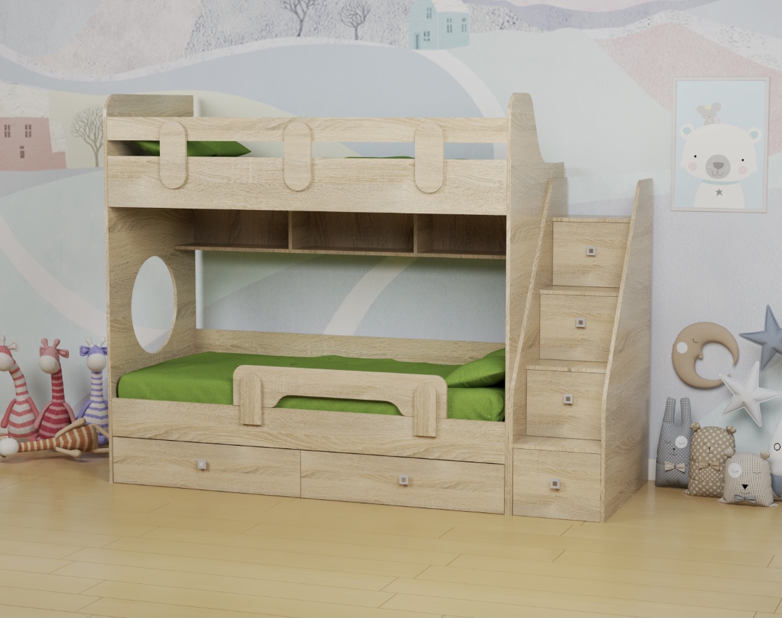 Двухъярусная кровать Фортуна-2 с удобной лестницей и комфортной высотой.