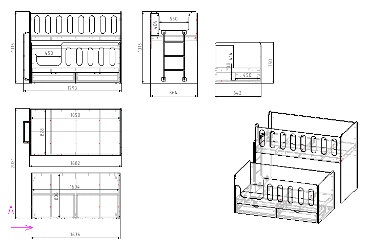 ширина с учетом лестницы 1793, высота 1315, глубина 864 мм