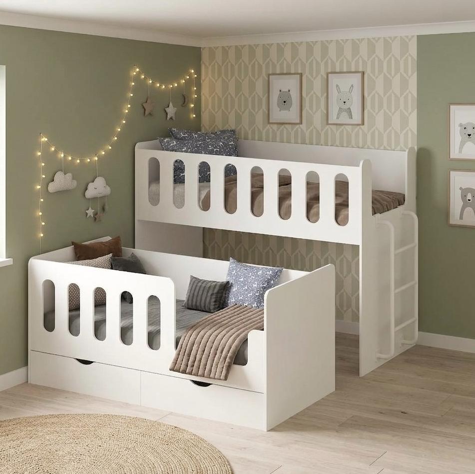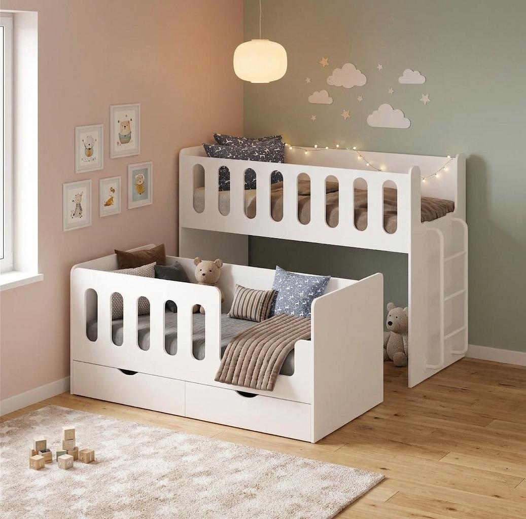 Двухъярусная кровать Близняшки с выдвижным спальным местом - отличное решение для детской комнаты.