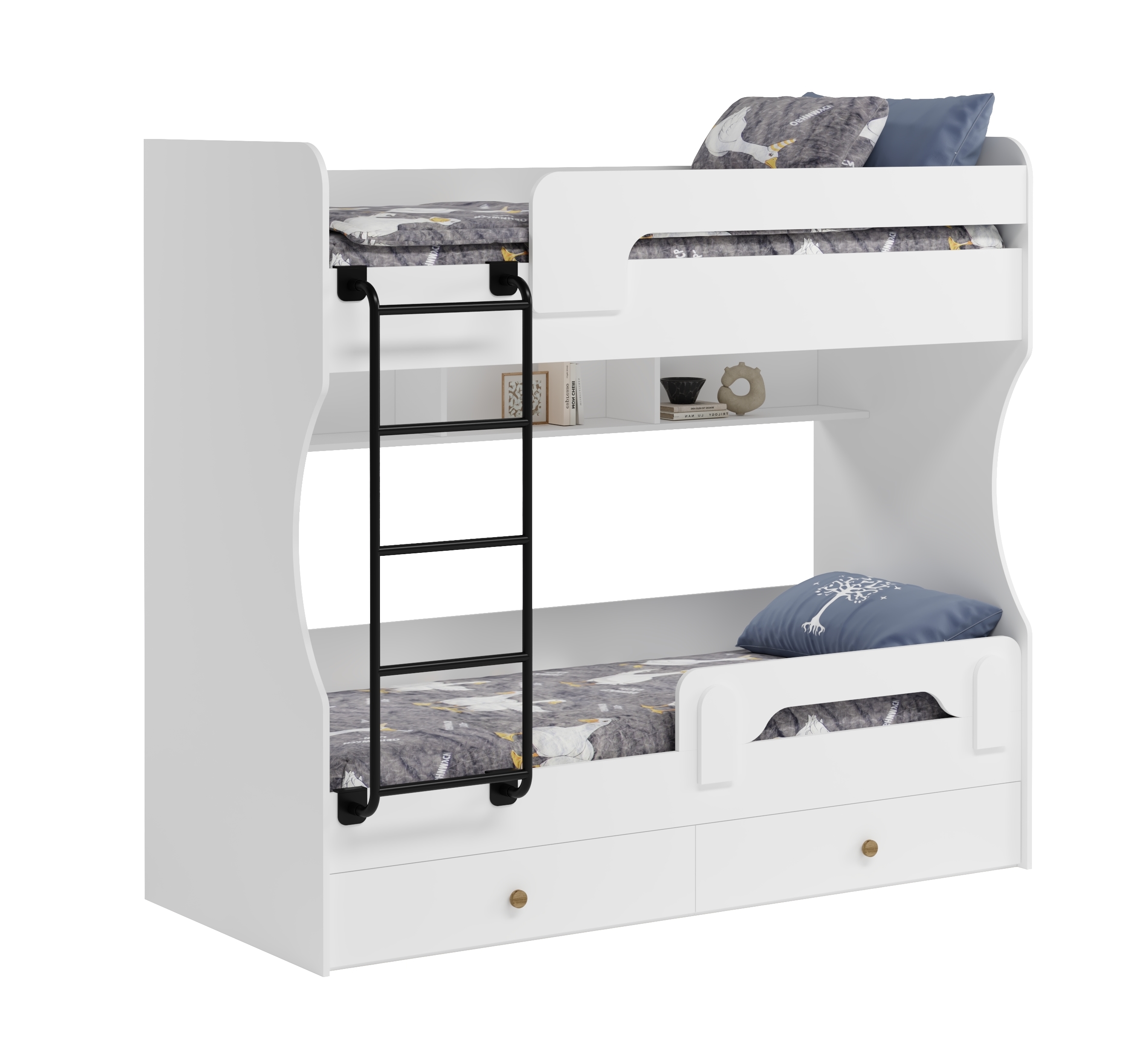 Двухъярусная кровать в белом цвете идеальна для любых интерьеров.