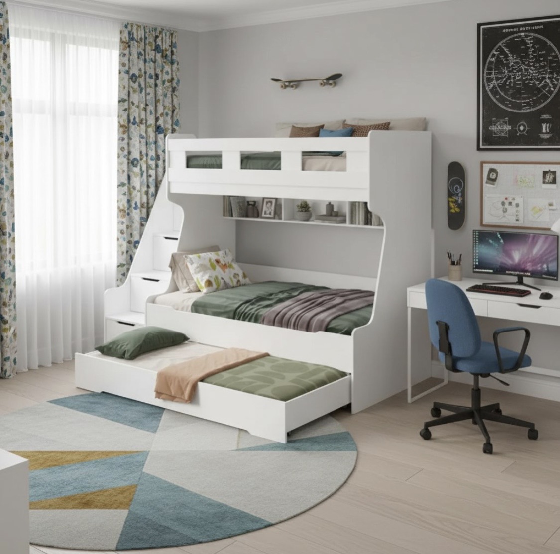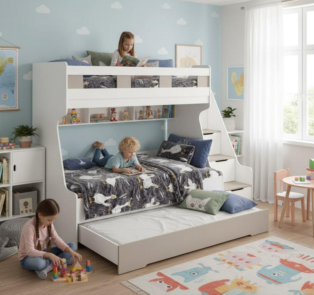 Кровать РУМ с дополнительным выдвижным третьим спальным местом - идеальное решение для детской комнаты!