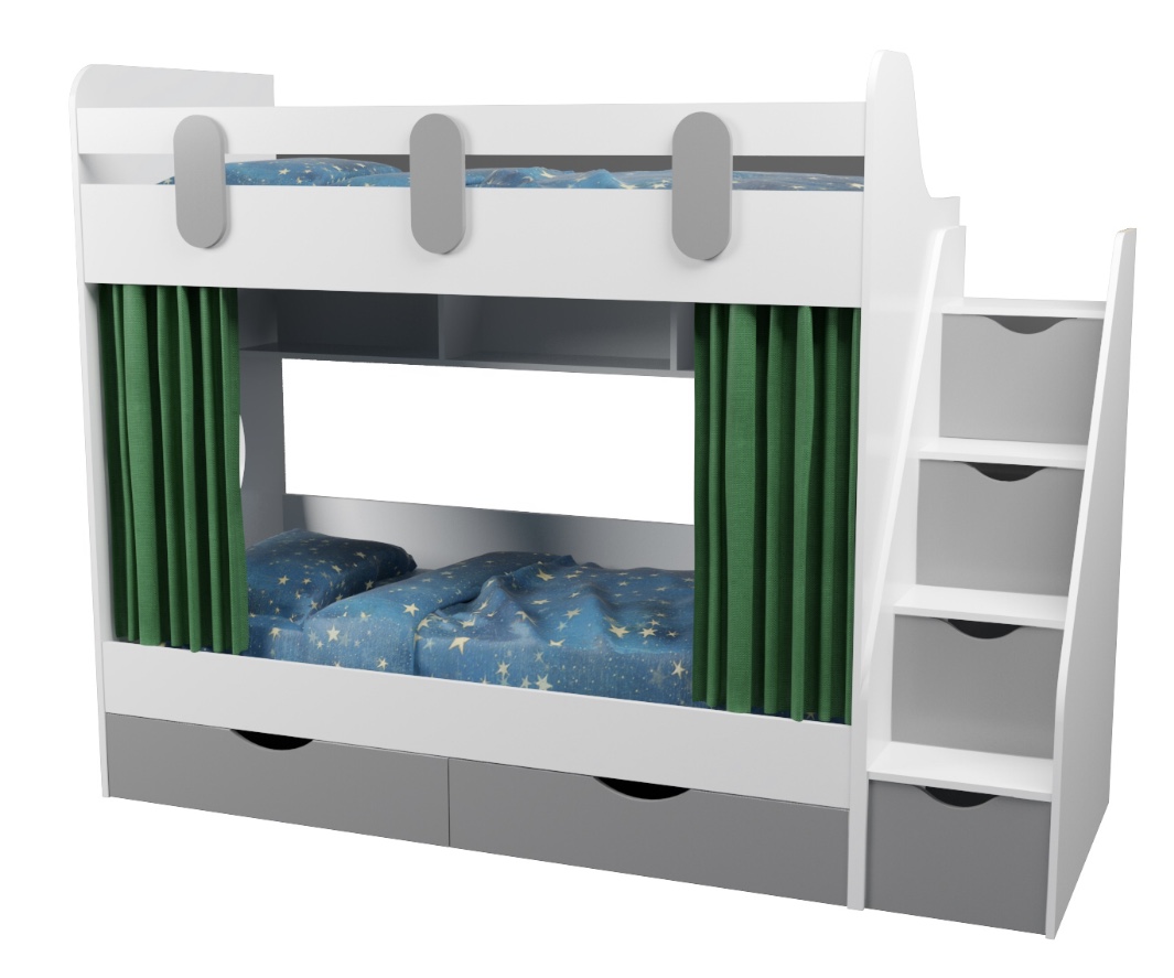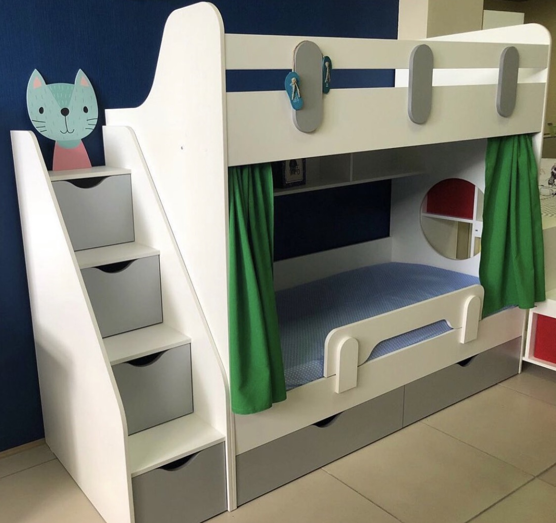 Кровать выполнена в универсальных цветах, которые отлично подходят разнополым детям.