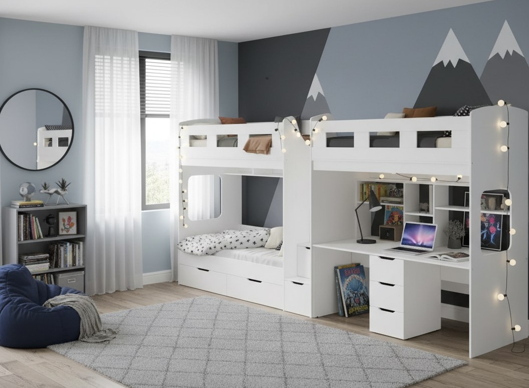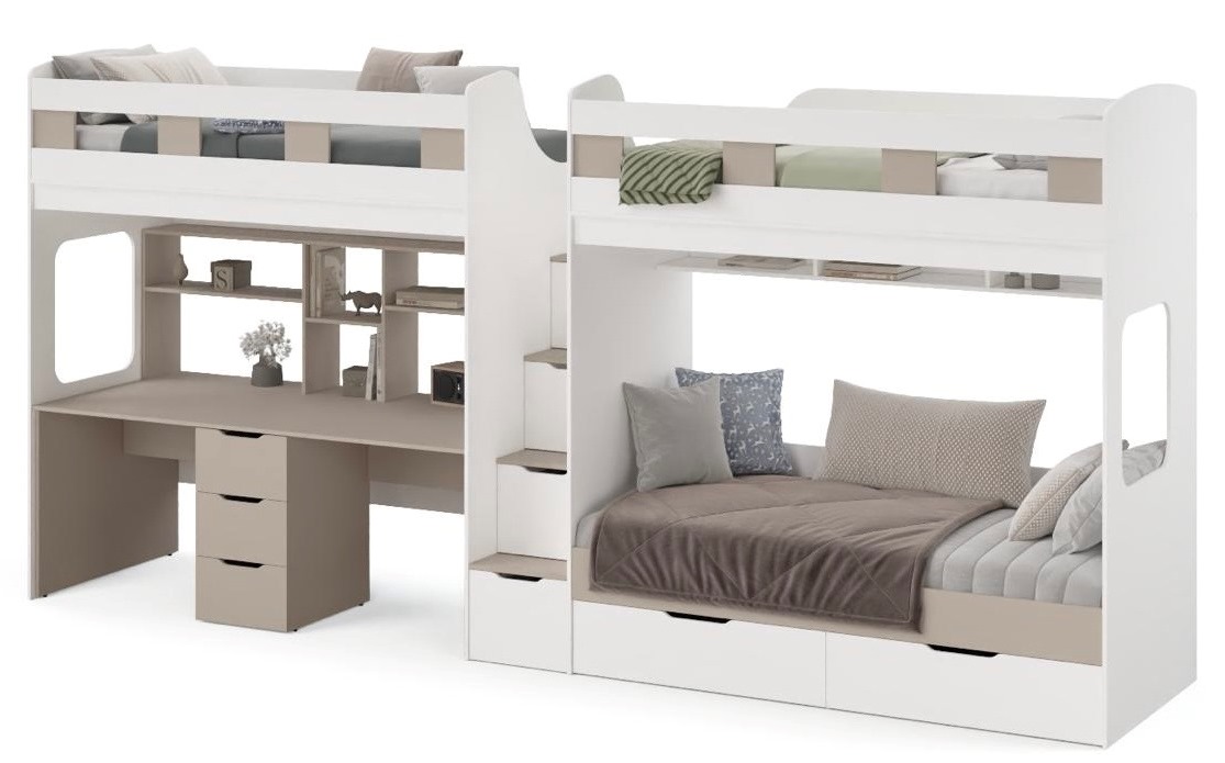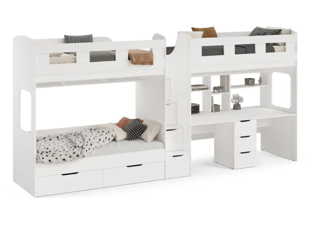 Уникальная 3-х ярусная кровать "Квартет" со столом для двоих детей - функциональность и стиль в каждой детали!