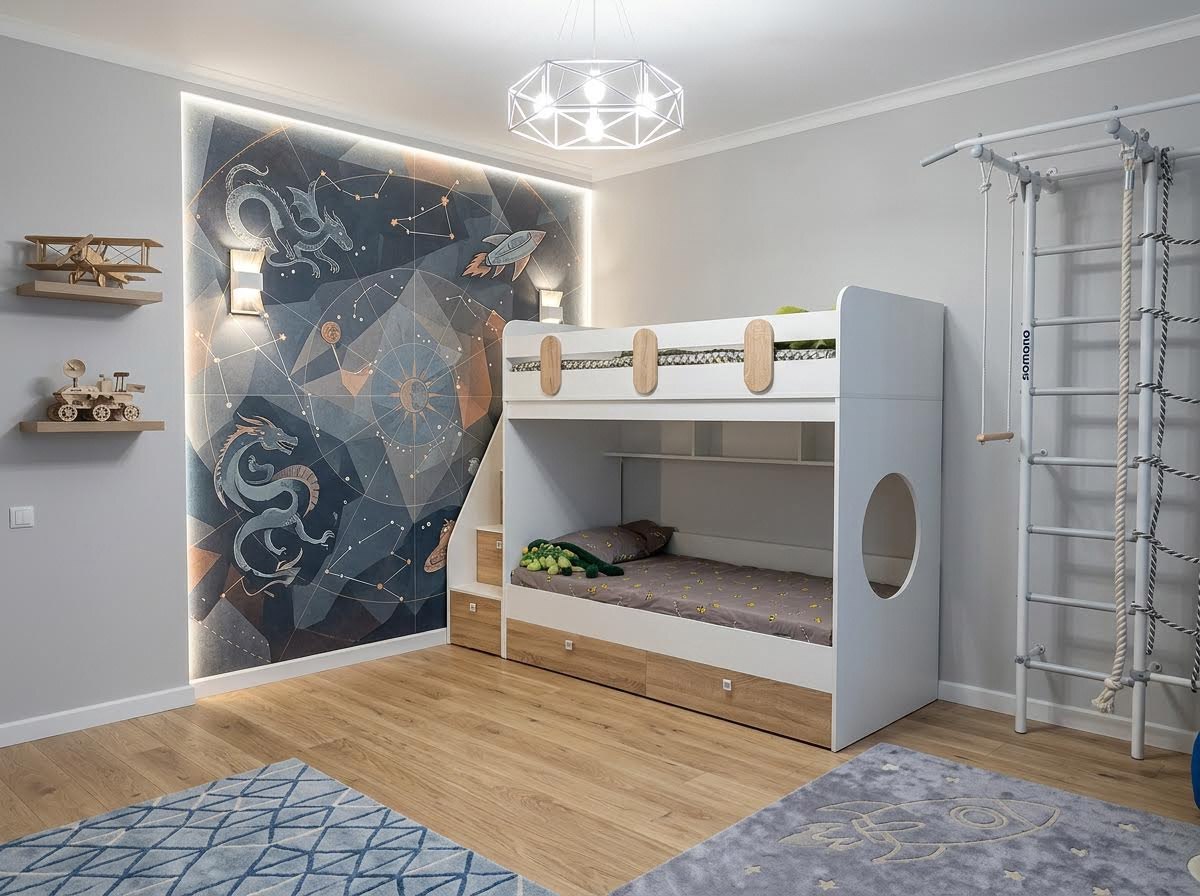 Двухъярусная кровать Фортуна-2 с удобной лестницей, высоким, безопасным бортиком и комфортной высотой.