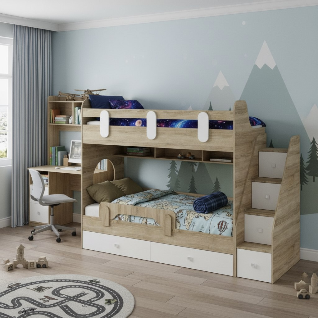 Высокая нагрузка на спальные места. Прочные ящики! Высокий, безопасный бортик |