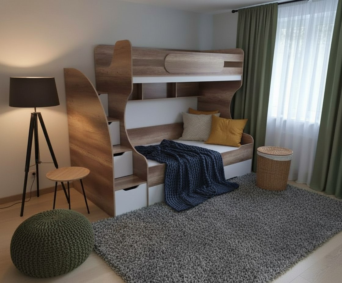 Кровать двухъярусная БИГ с дополнительным выдвижным спальным местом.