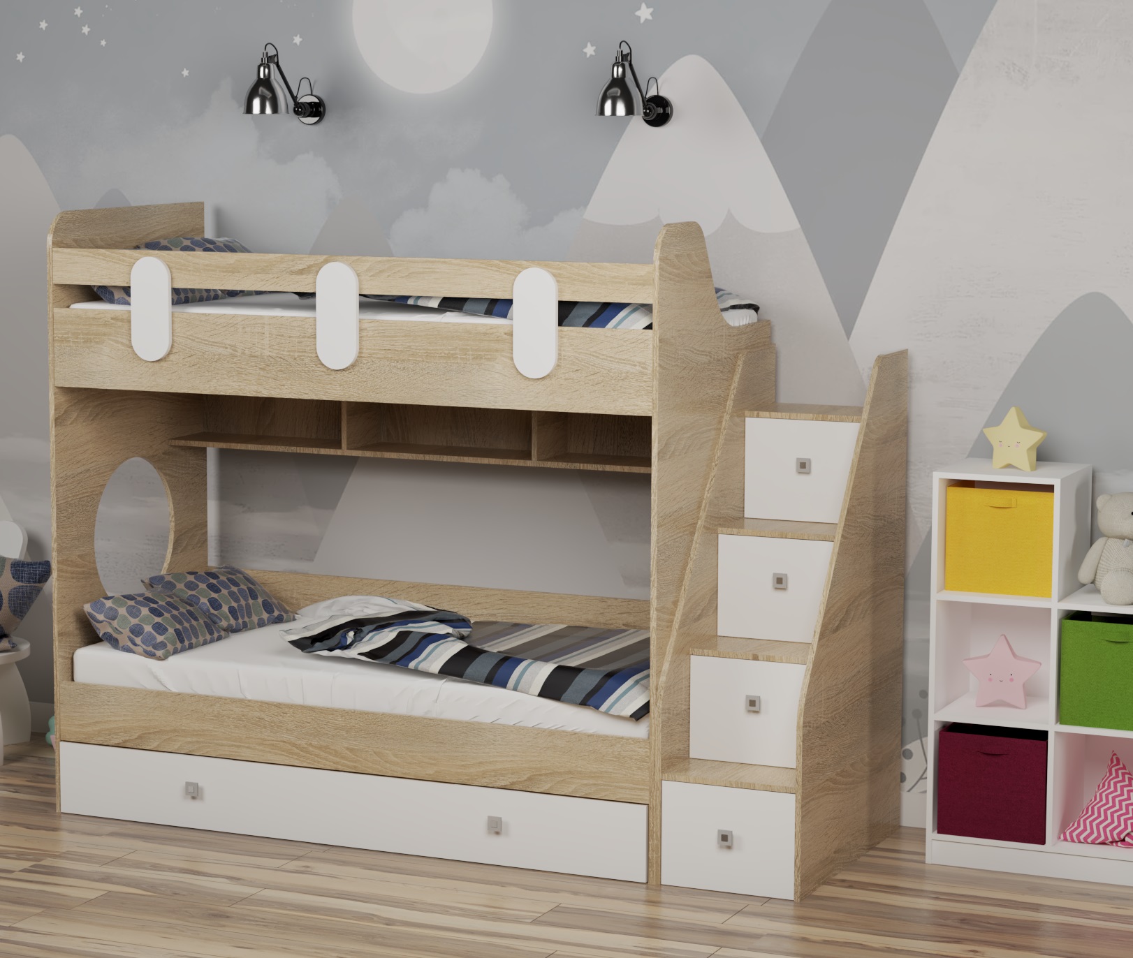 Прочная, стильная кровать Фортуна-3 с удобной, безопасной лестницей и комфортной высотой.