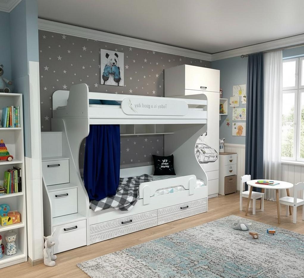 Высокая нагрузка на спальные места. Прочные ящики. Высокий, безопасный бортик |