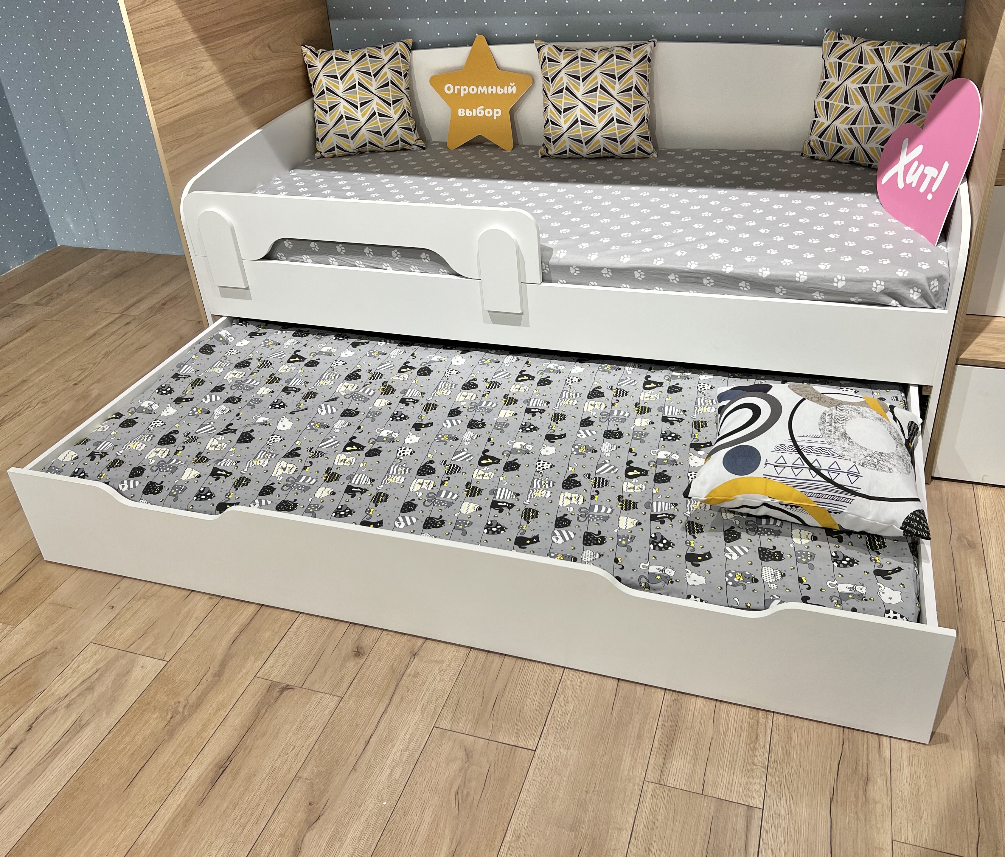 Нижний выдвижной ящик можно использовать как дополнительное (третье) спальное место или как ящик для хранения белья.