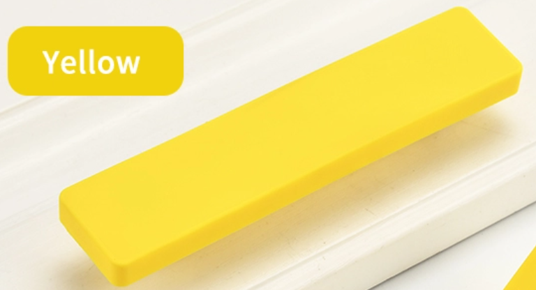 На фасады устанавливаются силиконовые ручки яркого желтого цвета.