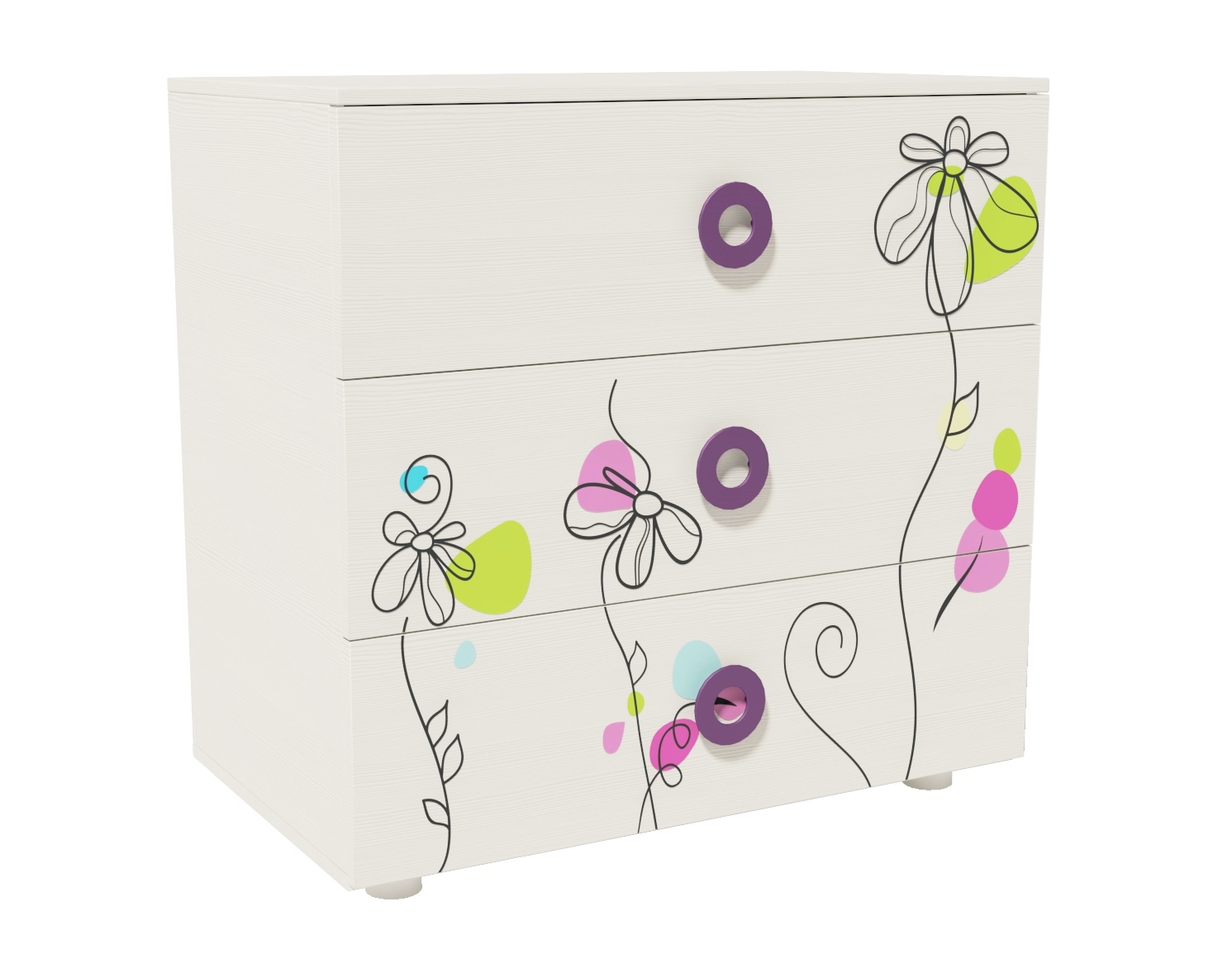 Комод выполнен из сертифицированного, качественного, экологически чистого ЛДСП Е0,5 в белом цвете с принтом.
