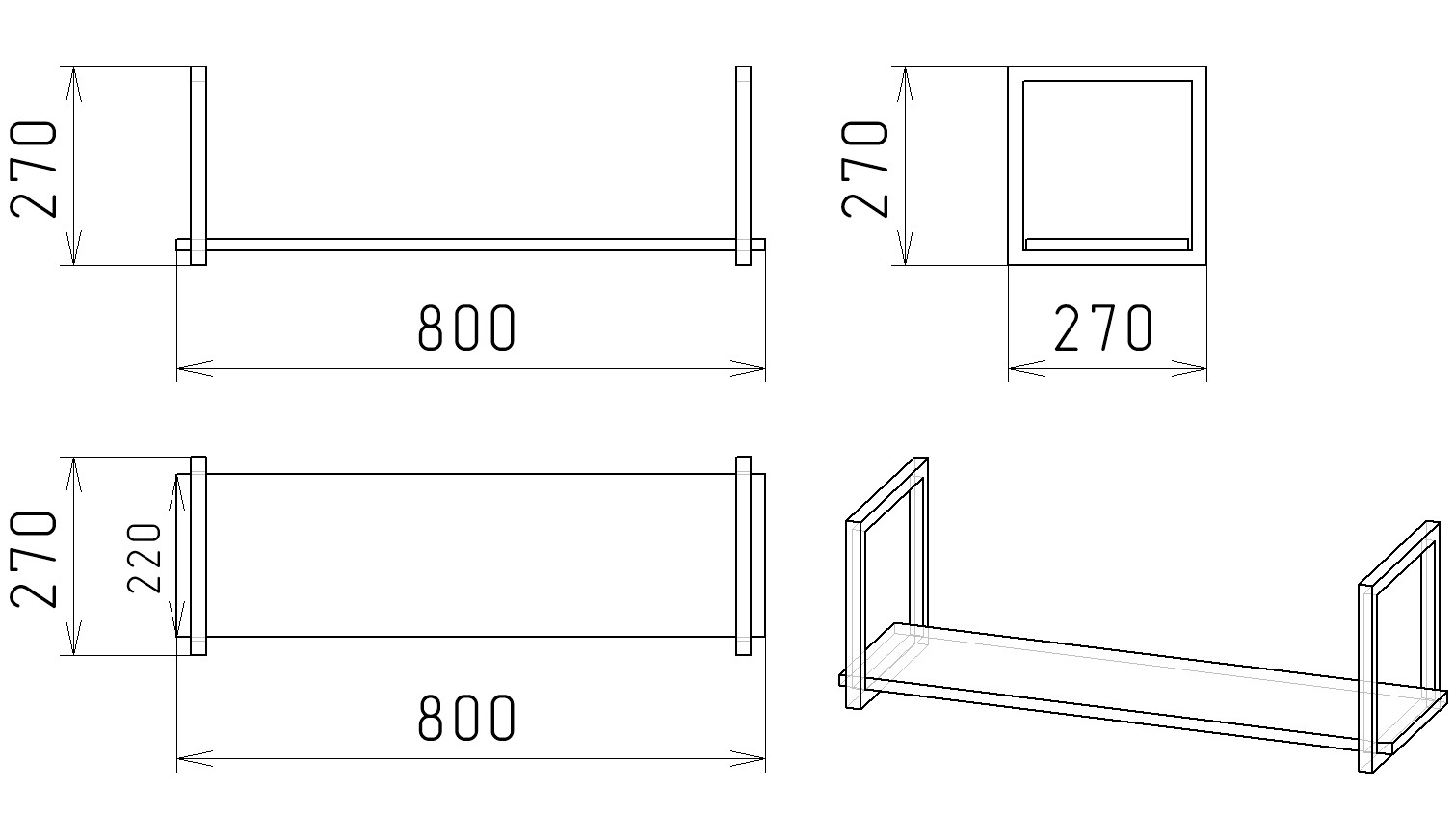 ширина 800, глубина 270, высота 270 мм