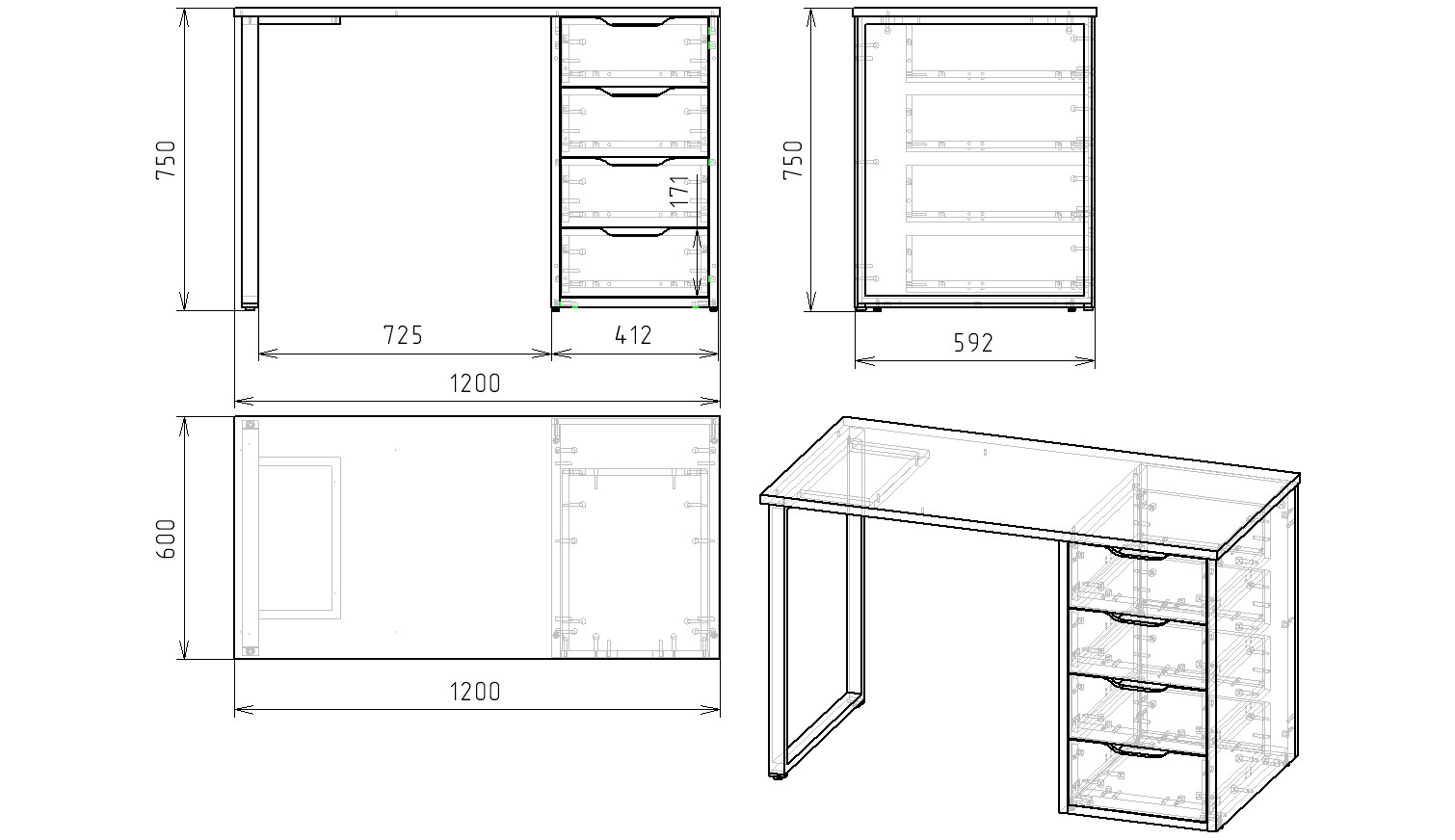 Габариты каждого стола: ширина 1200 х высота 750 х глубина 600 мм