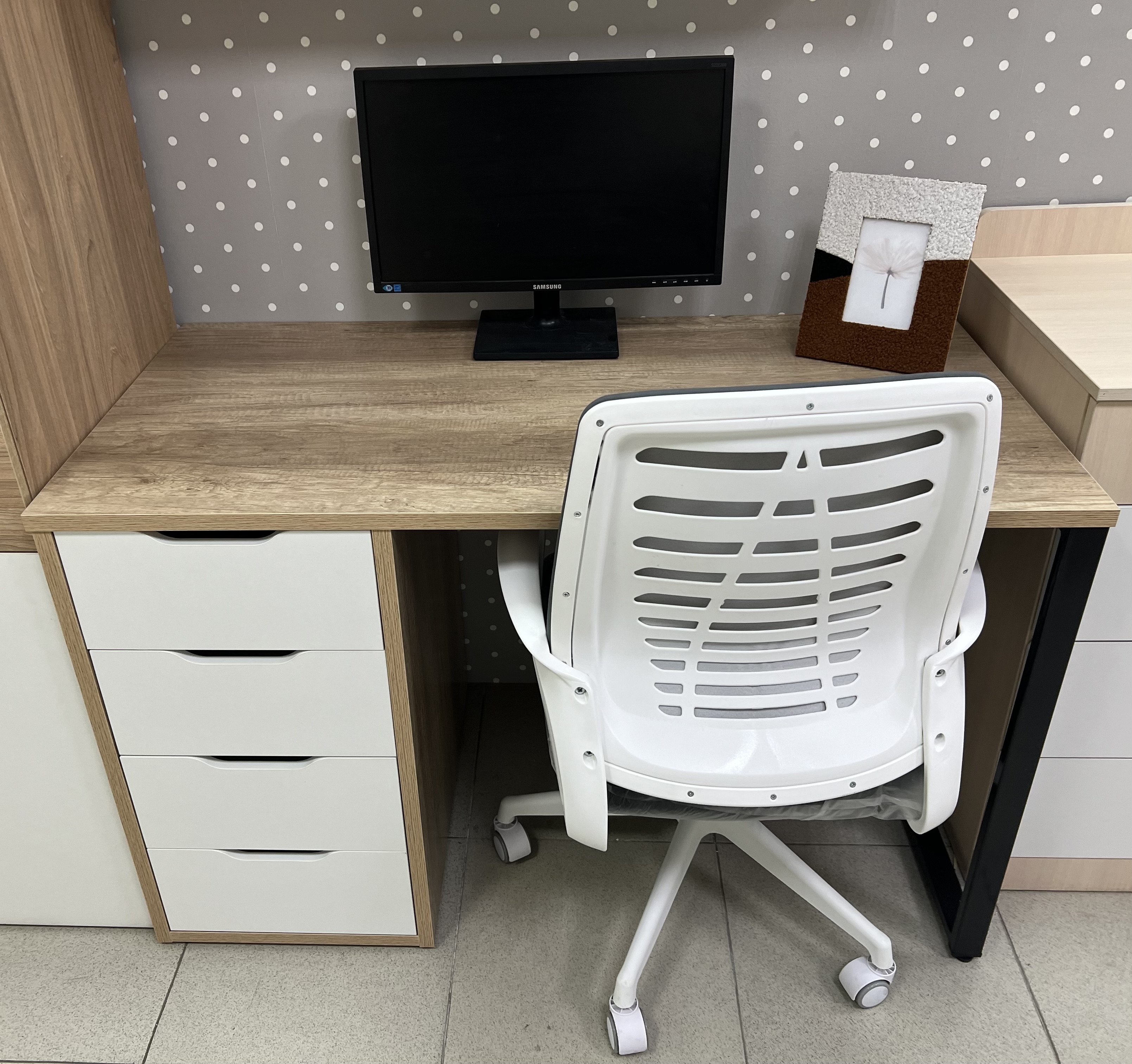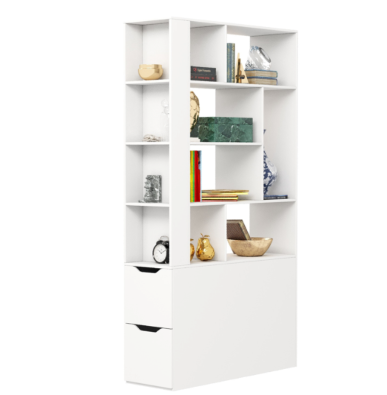 стол Соло в цветах дуб каньон с белым (2 шт) + стеллаж-перегородка для зонирования + навесные полки Лофт (2 шт)