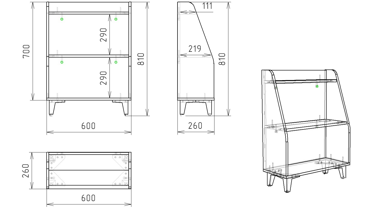 высота 700, глубина 260, ширина 600 мм
