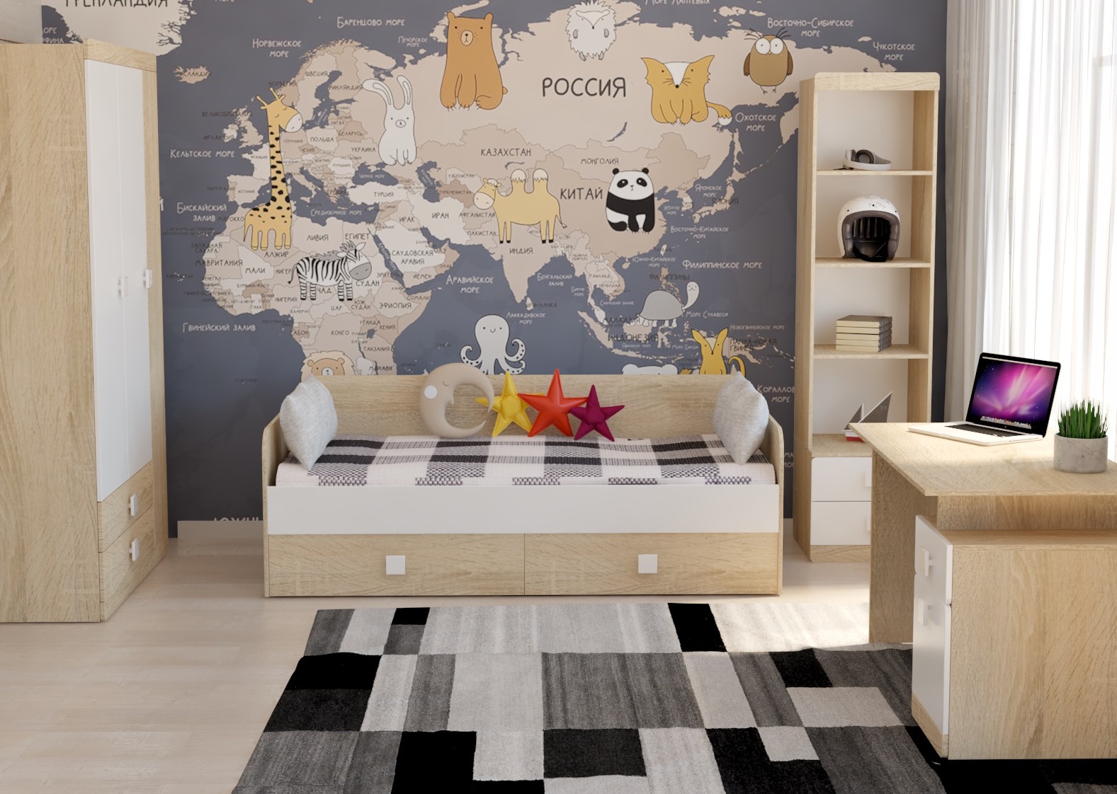 * В стоимость набора входят: кровать + шкаф 3-х створчатый + стеллаж + стол