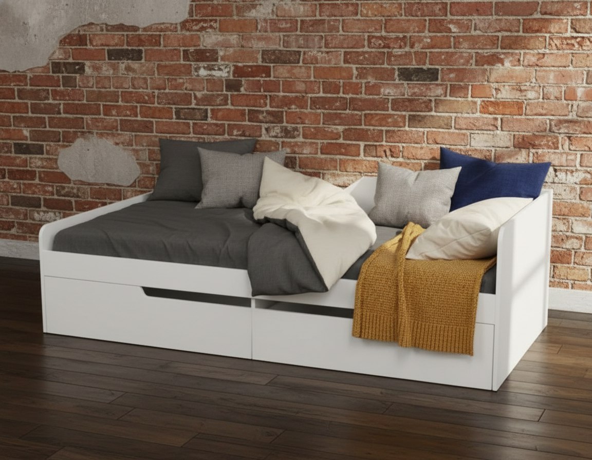 В кровать встроены два выдвижных ящика на шариковых направляющих полного выдвижения.