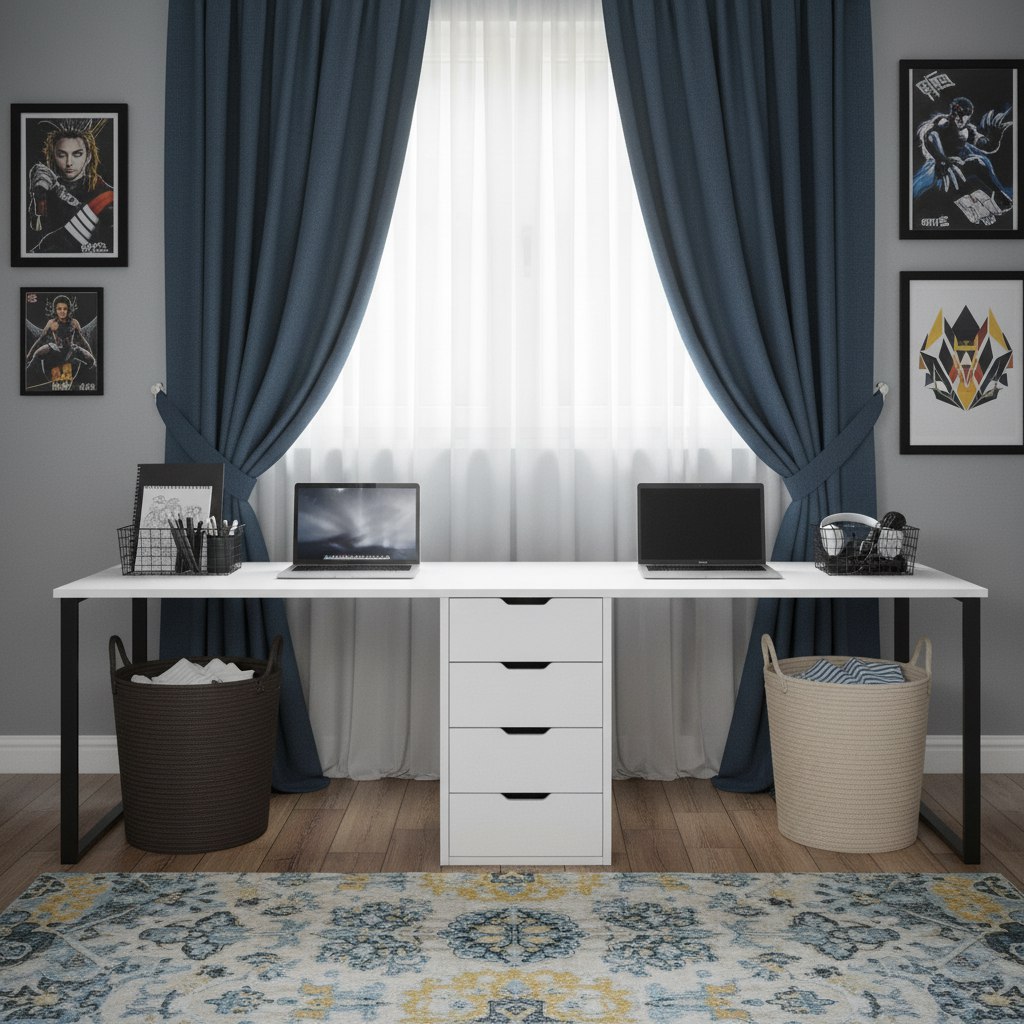 Стол для двоих детей - отличное решение для небольших комнат.