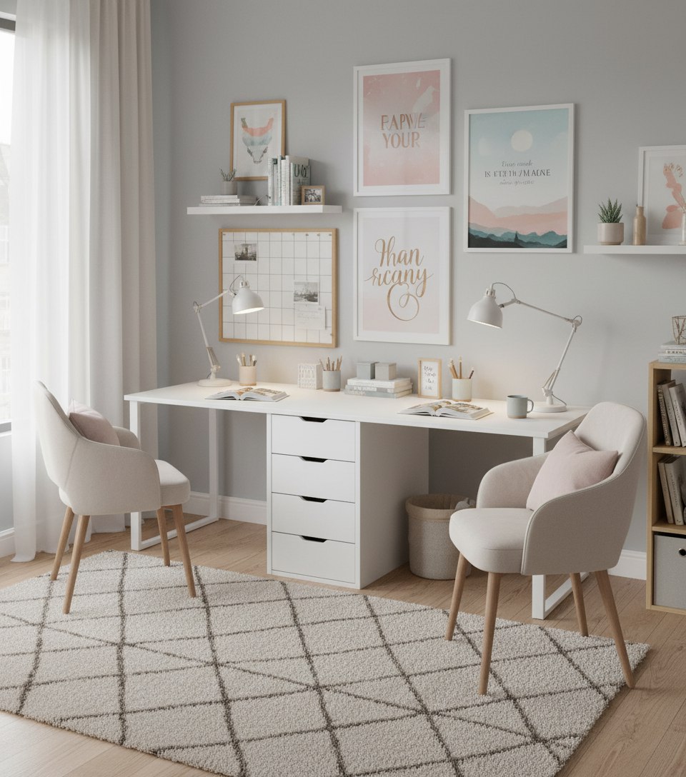 Стол для двоих детей - отличное решение для небольших комнат.