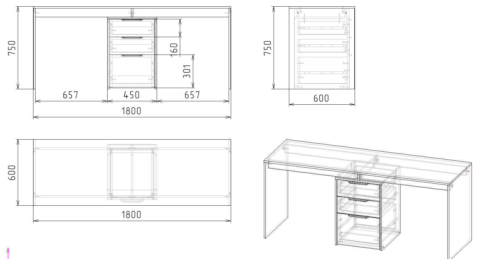 ширина 1800 х высота 750 х глубина 600 мм