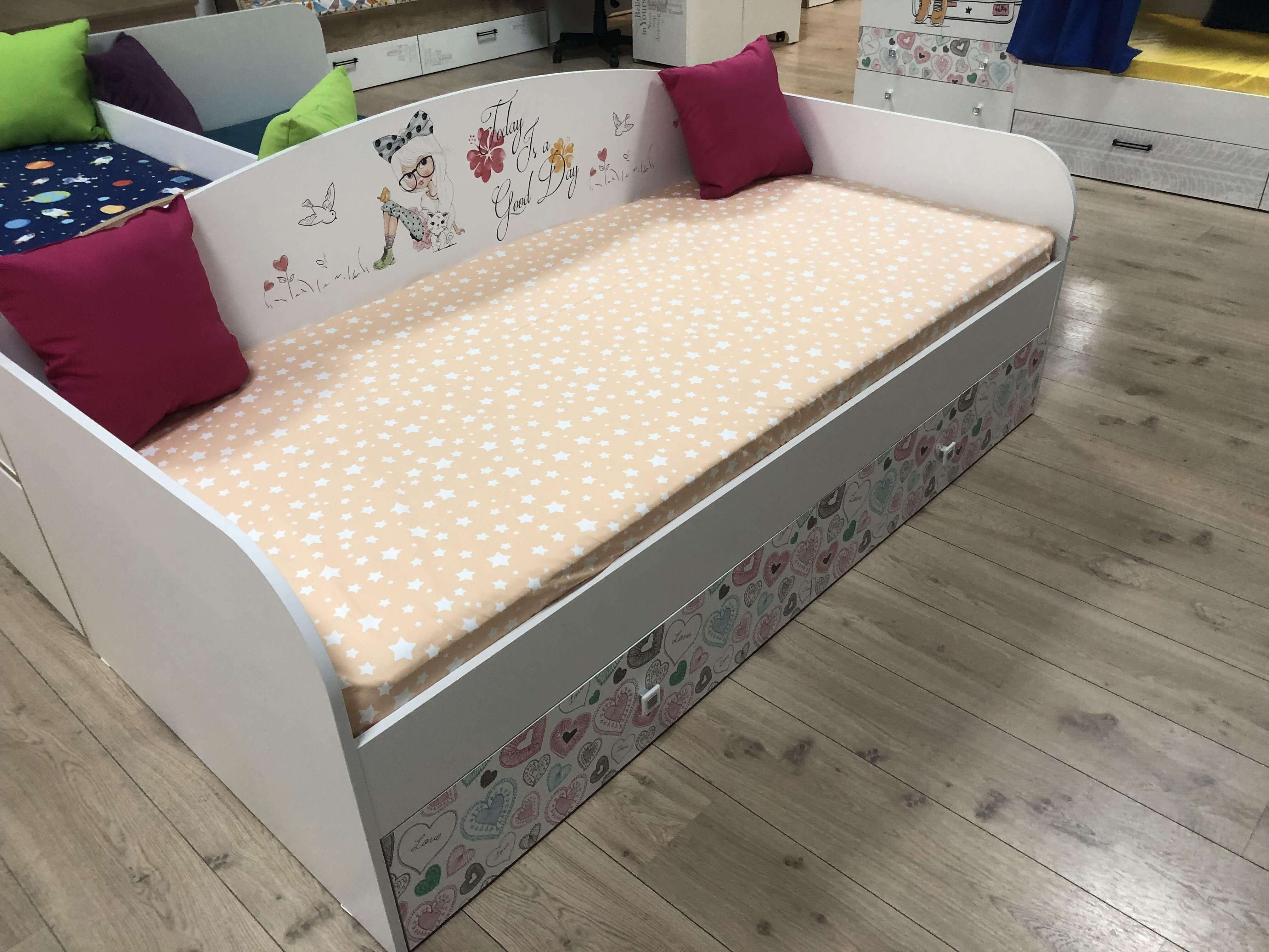 Мебель выполнена из сертифицированного, качественного, экологически чистого ЛДСП в белом цвете с дизайнерским принтом
