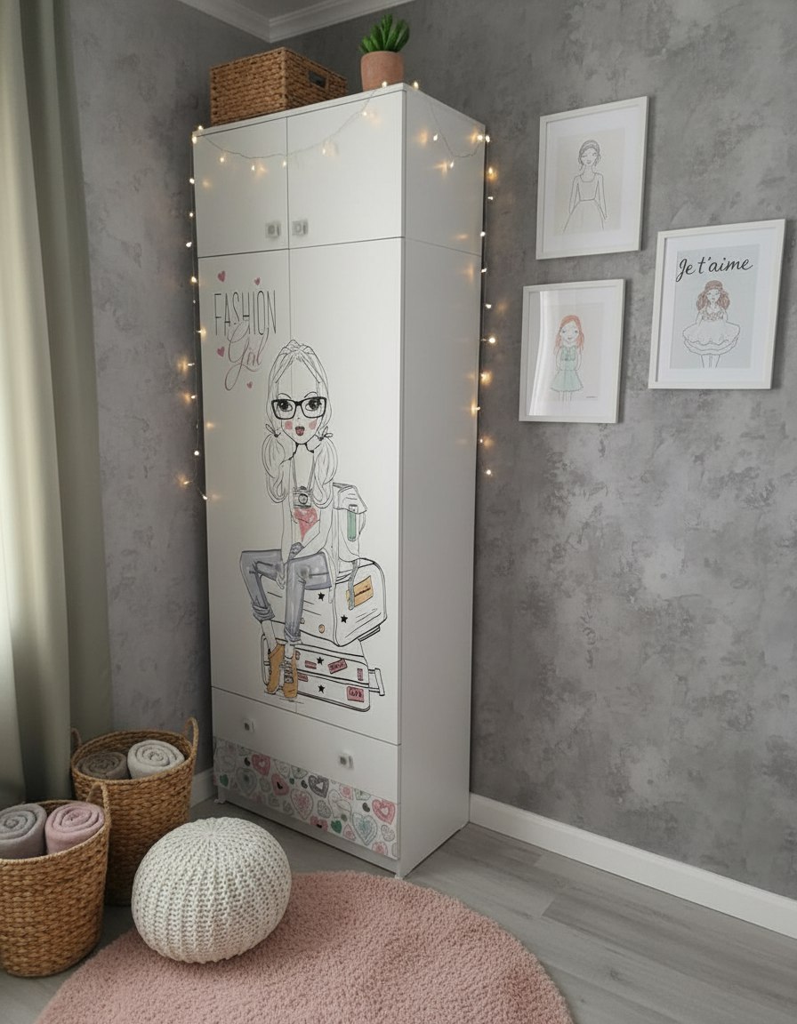 Материал: сертифицированное, качественное, экологически чистое ЛДСП Е0,5 в белом цвете с дизайнерским принтом.
