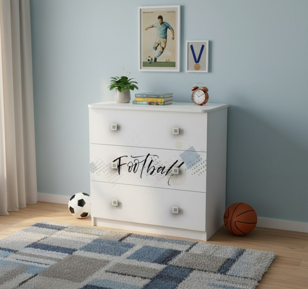 Края комода закруглены и обработаны ударопрочной кромкой ПВХ