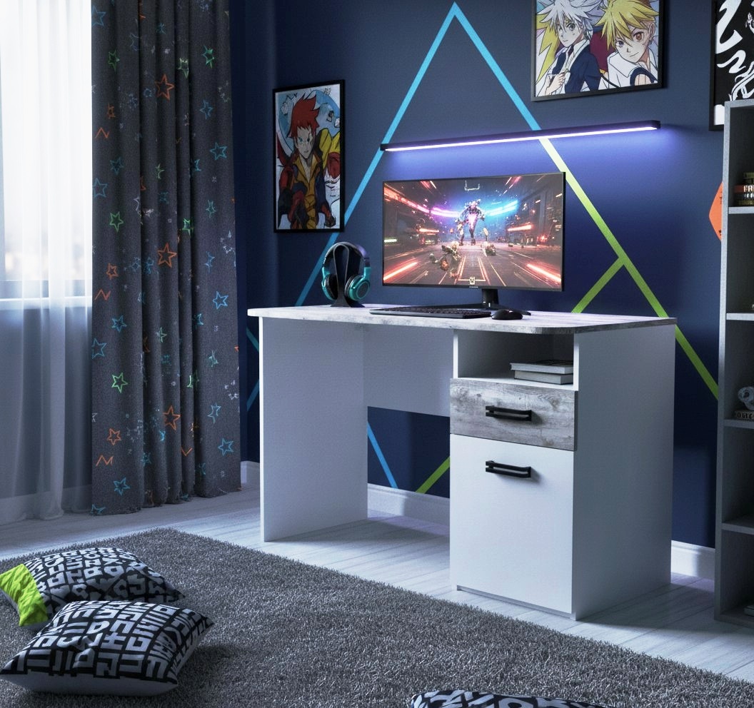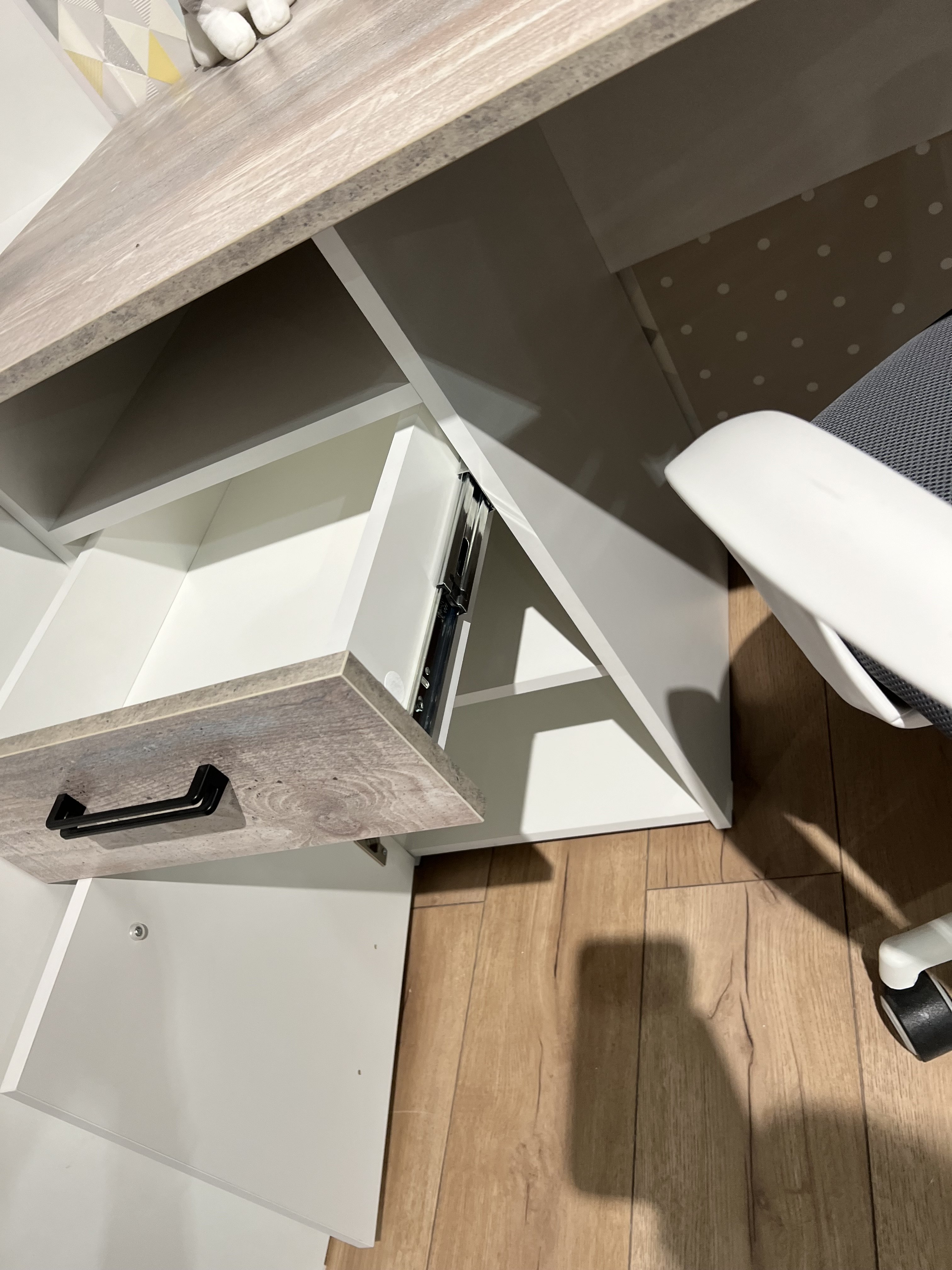 Мебель выполнена из сертифицированного, качественного, экологически чистого ЛДСП класса Е0,5 в сочетании цветов "бетон пайн" + белый.