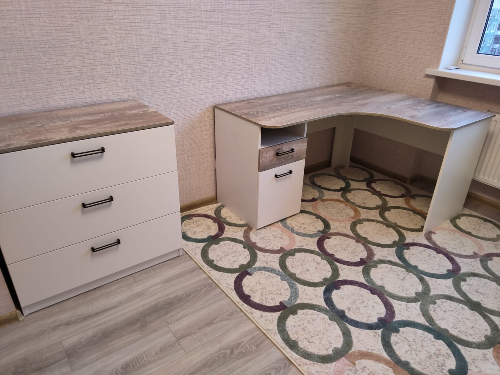 Мебель выполнена из качественного, экологически чистого ЛДСП класса Е0,5 в цветах бетон пайн + белый"