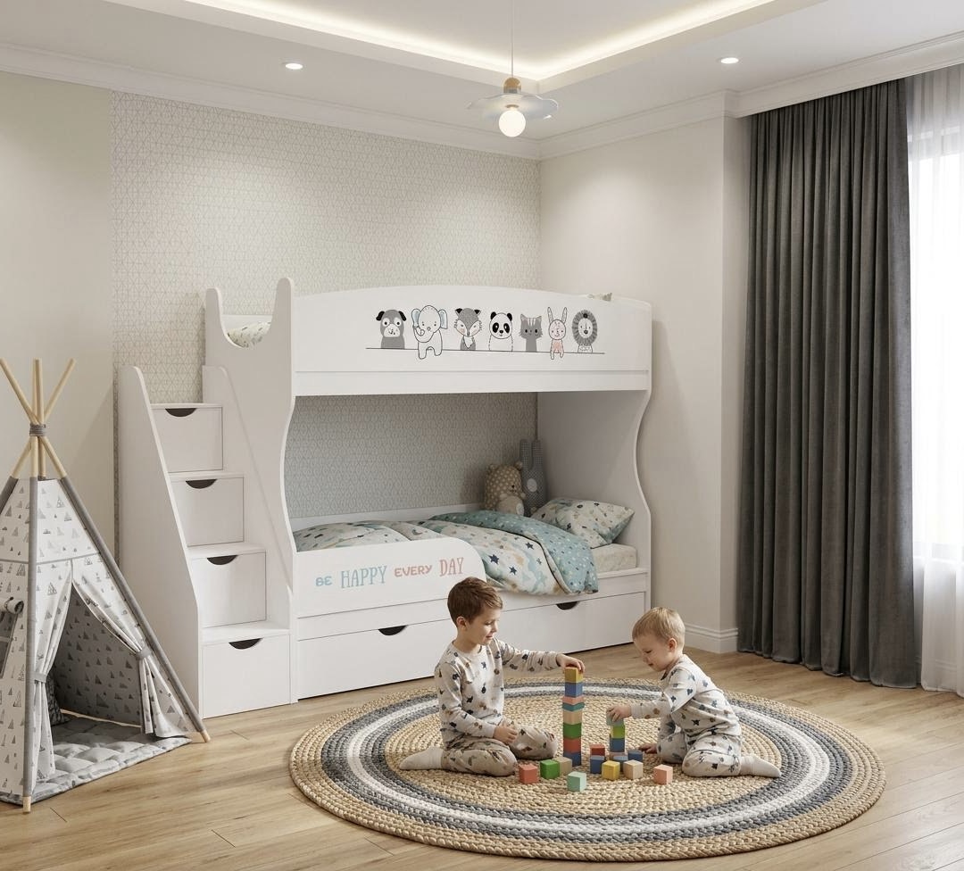 Комплект коллекции Хэппи: кровать 2-х ярусная + шкаф гардеробный от Династия Kids