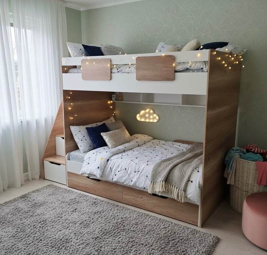 Вместо них - цельный и прочный настил из ЛДСП, который выдерживает сверхвысокую нагрузку и позволяет расположиться даже взрослому с ребенком.