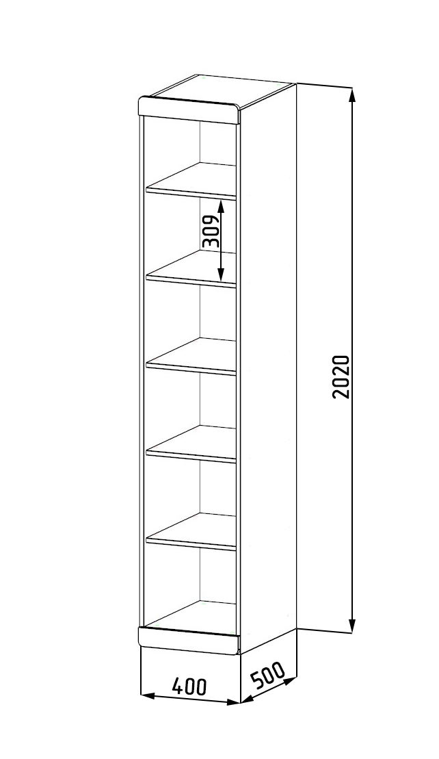 Габариты пенала: ширина 400 х глубина 519 х высота 2040 мм