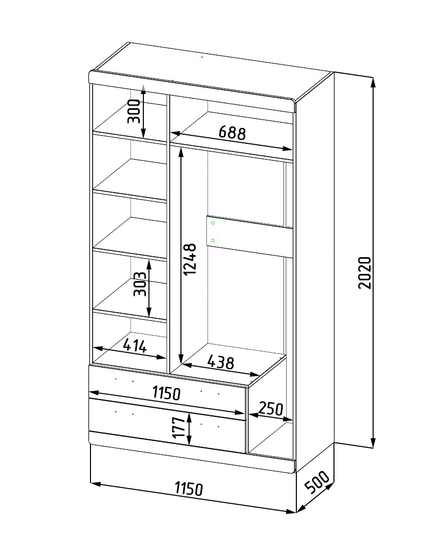 Габариты шкафа: ширина 1150 x глубина 516 x высота 2040