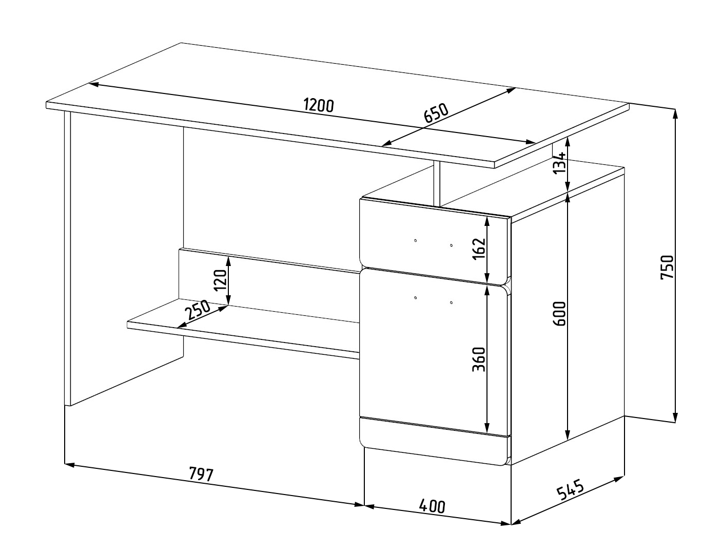 Габариты стола: ширина 1200 х глубина 650 х высота 750 мм