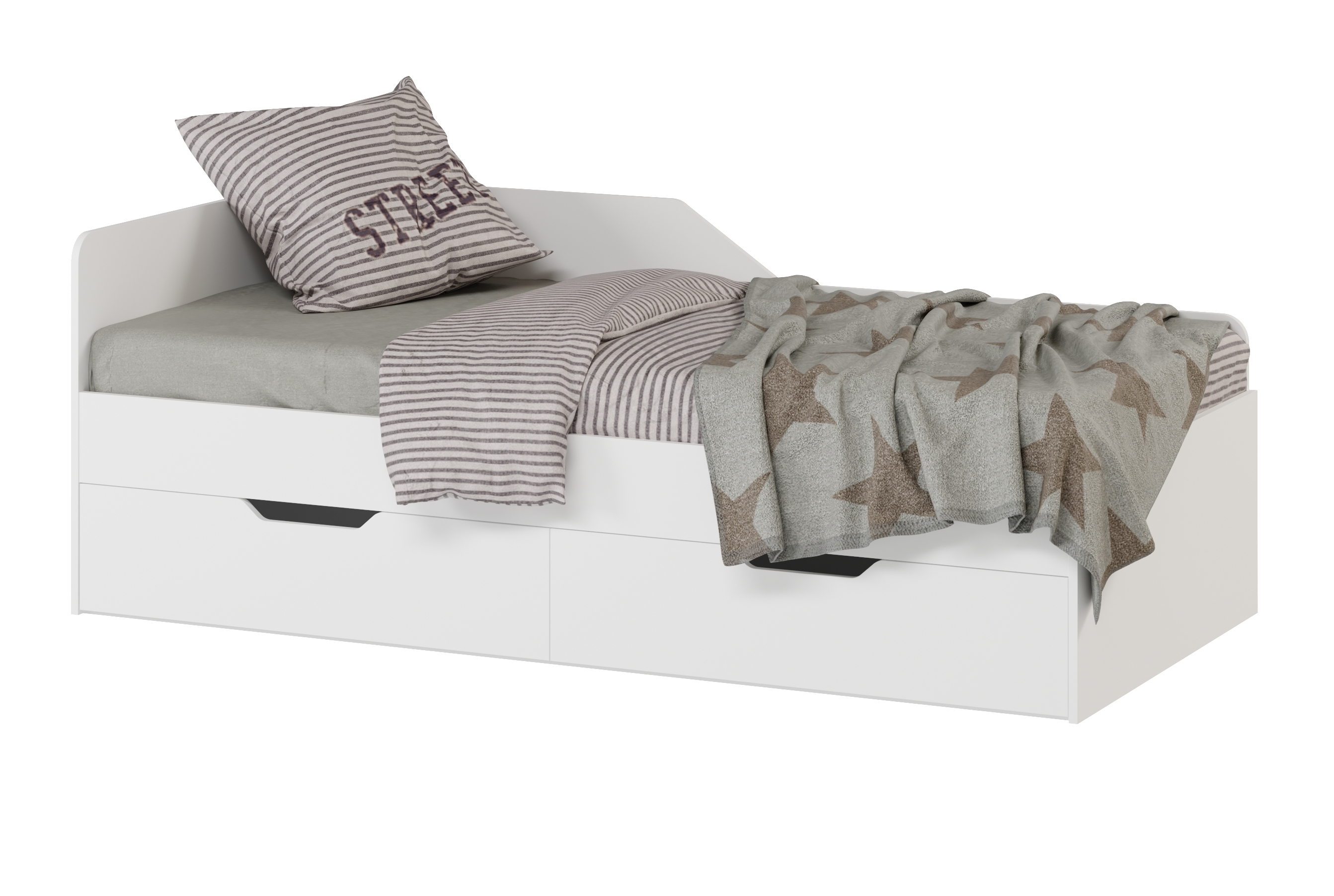 В кровать встроены два выдвижных ящика на шариковых направляющих полного выдвижения.