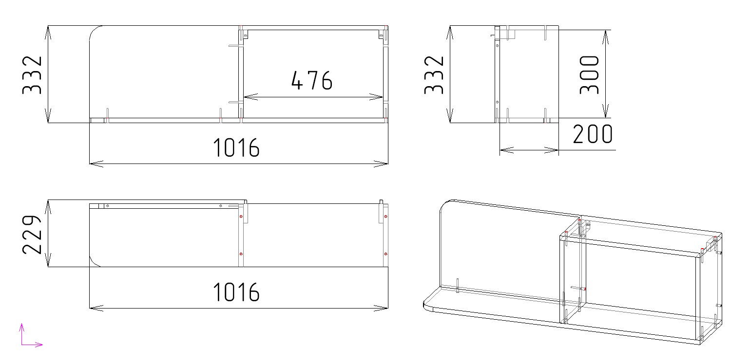 Габариты: ширина 1016, высота 332, глубина 200 мм