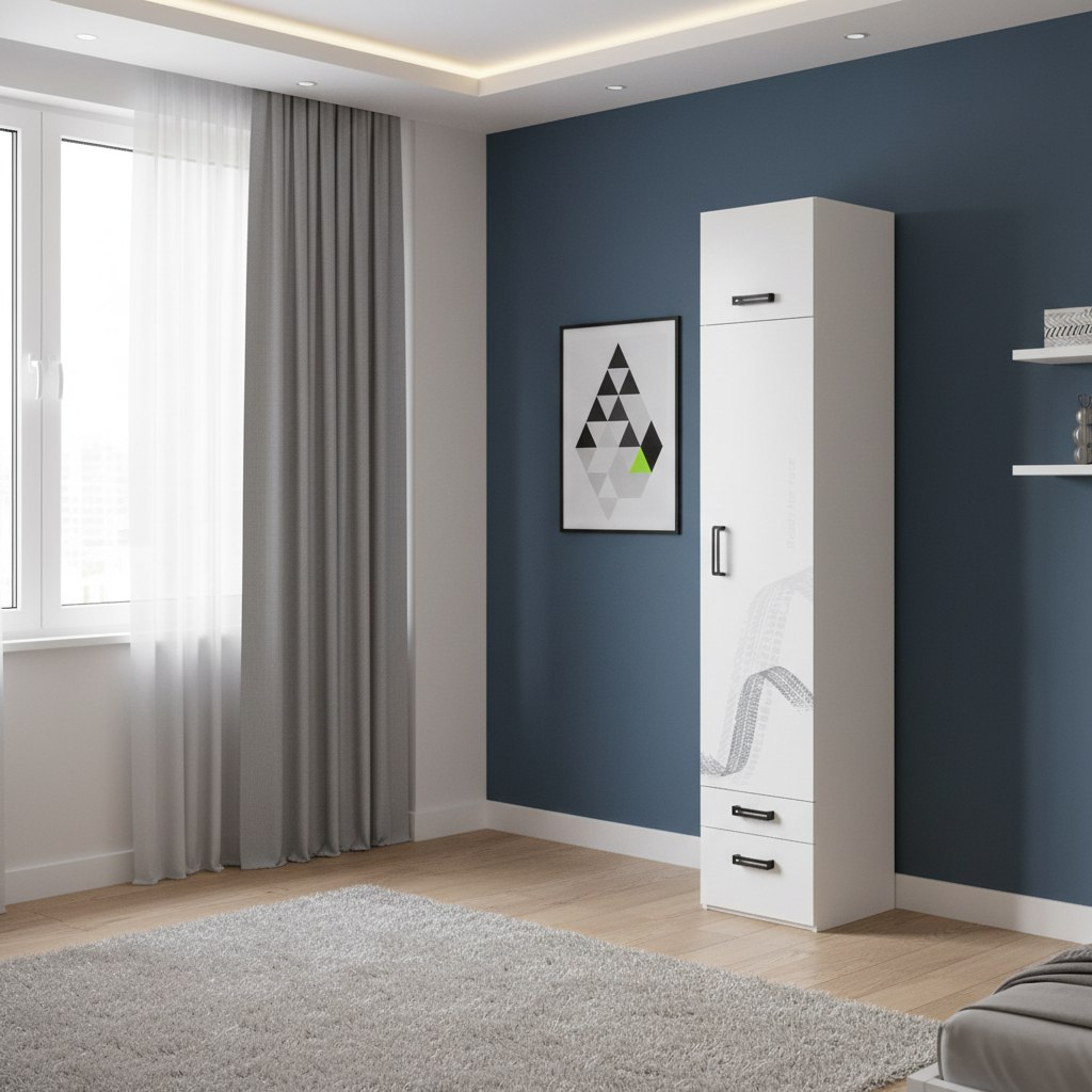 Мебель выполнена из сертифицированного, качественного, экологически чистого ЛДСП класса Е0,5 в белом цвете и оформлена дизайнерским принтом.