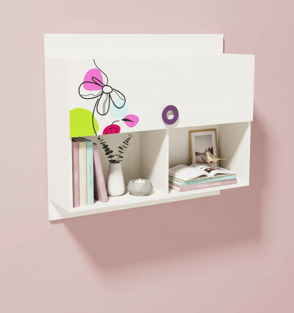 Полка выполнена из сертифицированного, качественного, экологически чистого ЛДСП Е0,5 в белом цвете с принтом.