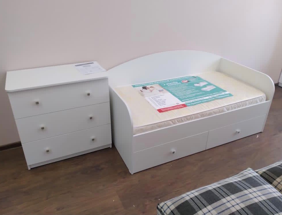 Мебель выполнена из сертифицированного, качественного, экологически чистого ЛДСП класса Е0,5 в белом цвете.