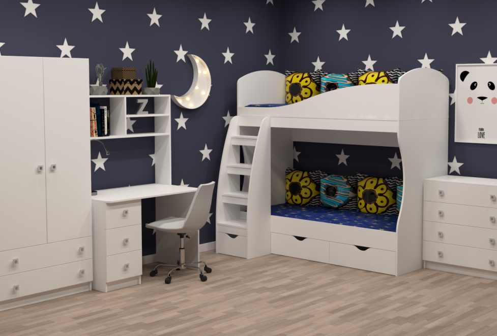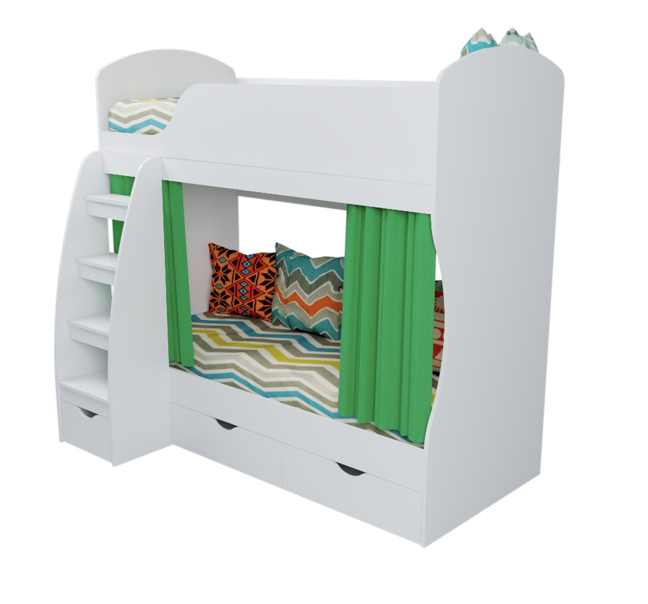 Габариты кровати: ширина 1844 х высота 1758 х глубина вместе с лестницей 1165 мм