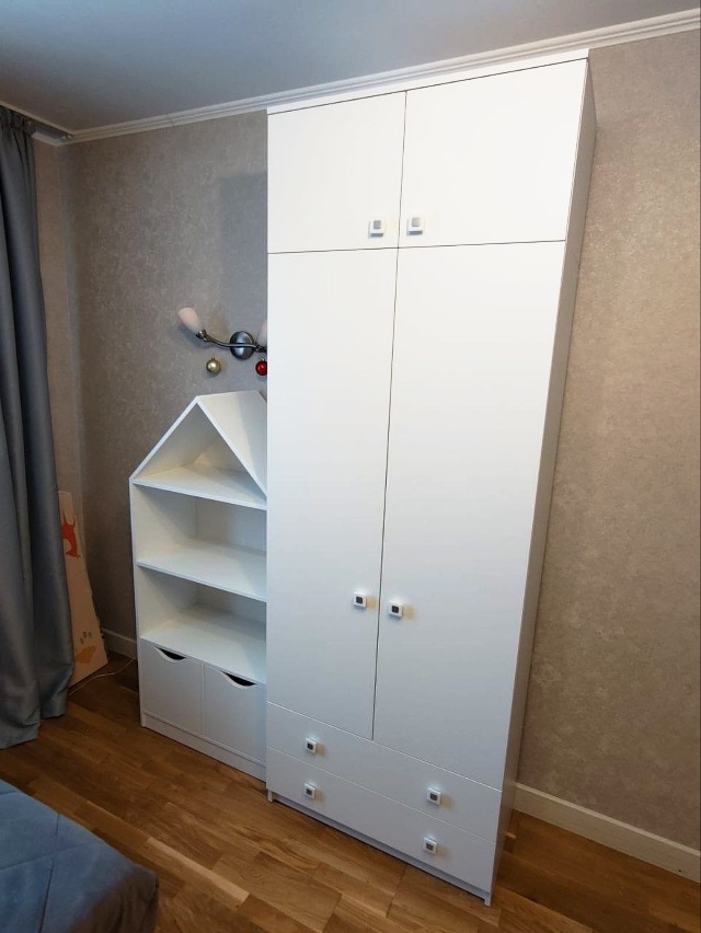 <comment>Заказывали ребёнку шкаф и кровать белого цвета. Оттенок цвета очень приятный, материал супер, ручки шкафа удобные и крепкие) отдельное спасибо доставке и мастеру по сборке, за оперативность. </comment>
