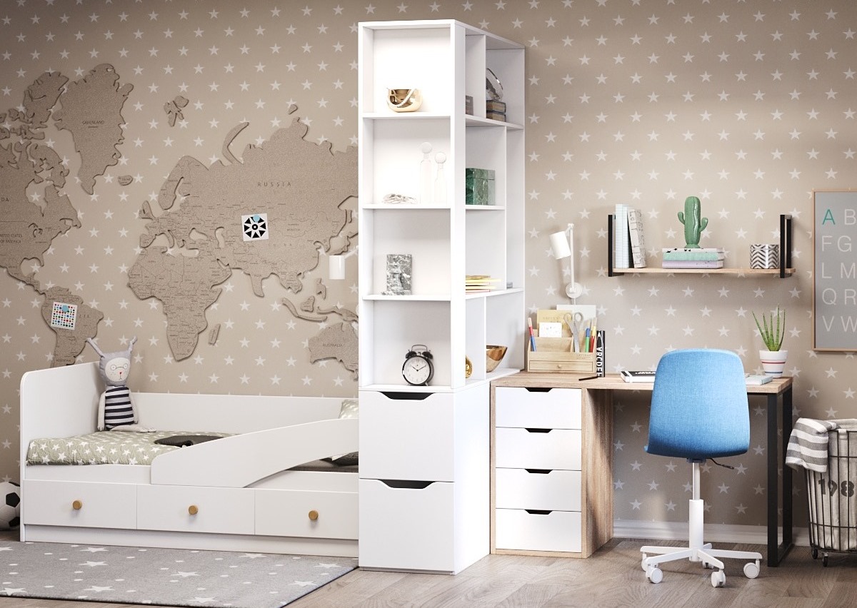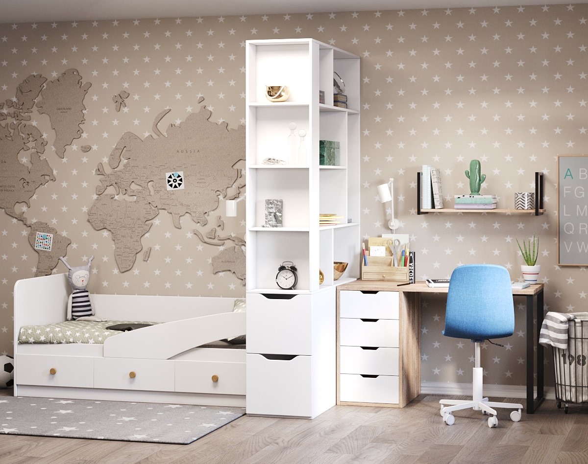 кровать Умка-5 New + стеллаж-перегородка Стиль + стол Соло + полка настенная Лофт-800