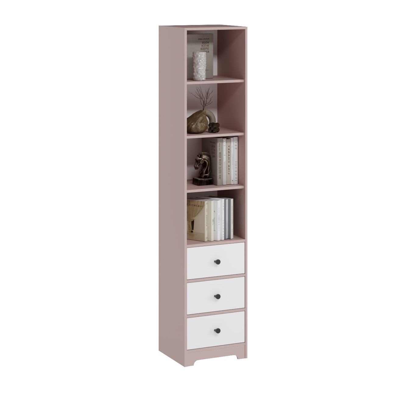В пенал встроены три выдвижных ящика на направляющих скрытого монтажа с доводчиками.