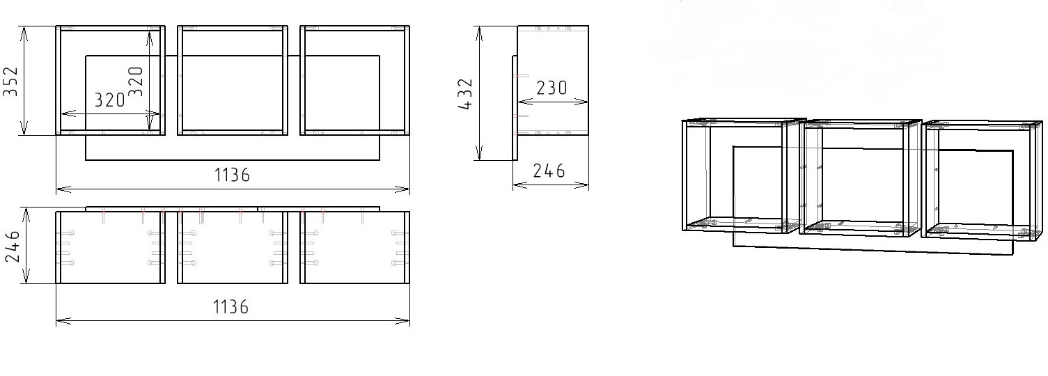 Габариты: ширина 1136, глубина 246, высота 432 мм