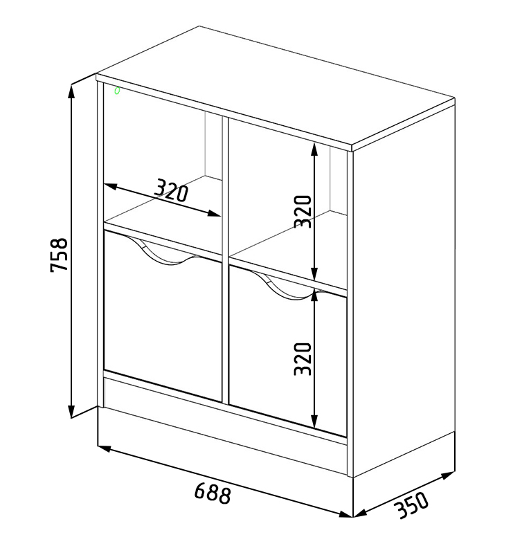 Габариты стеллажа: высота 758, глубина 350, ширина 688 мм